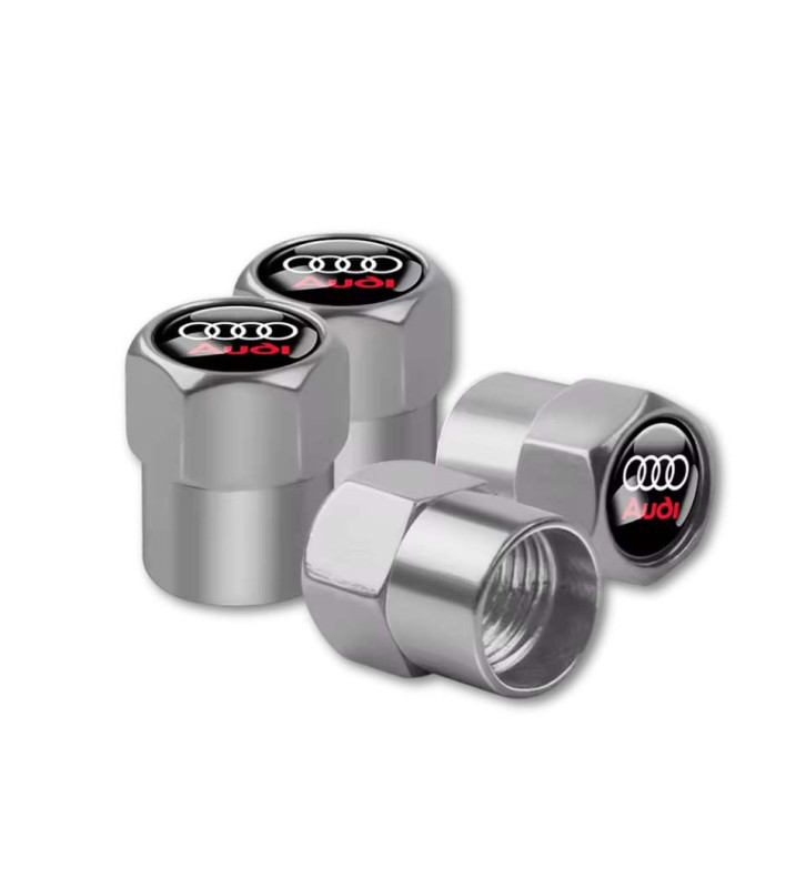 4 Pcs Tire Valve Caps for Audi Red text Logo Rings Stem Dust Cap Car Accessories Silver