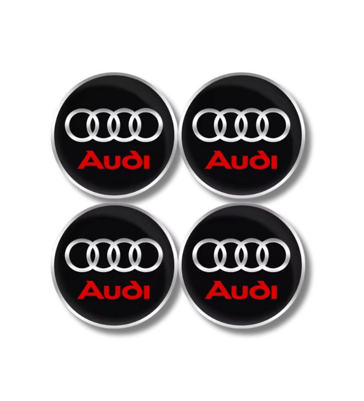 4 Stück x 65mm AUDI METALL Aufkleber AUDI Felgen SCHWARZ/ROT LOGO Radkappen Embleme