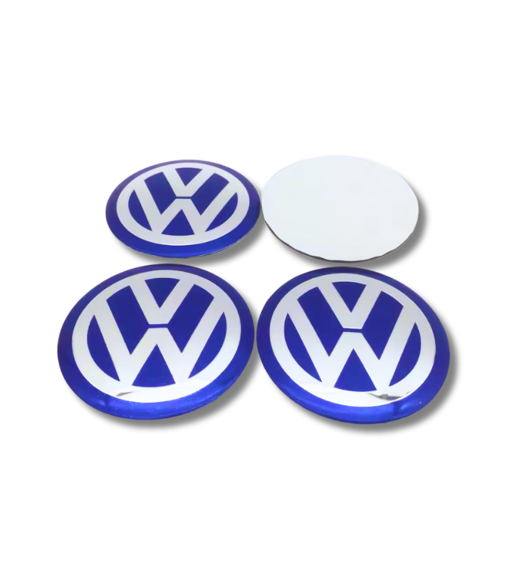 4 Stück x 80mm VW METALL Aufkleber VOLKSWAGEN Felgen BLAU LOGO Radkappen Embleme